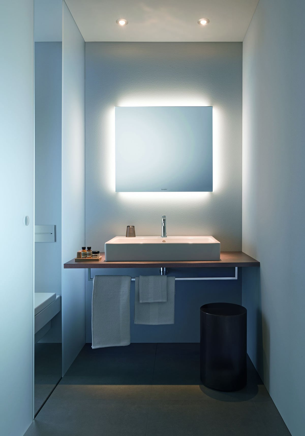 Odpowiednie oświetlenie lustra to podstawa. Musi ono obejmować zarówno oświetlenie górne jak i boczne. Montaż oświetlenia tylko nad lustrem doświetla tylko czoło, zmuszając do pochylenia głowy i utrudniając precyzyjne nakładanie makijażu czy innych zabiegów kosmetycznych.