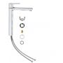 Montaż: 1-otworowy stojący Obsługa: bateria jednouchwytowa, metalowa dźwignia Rozmiar: XL, idealny do umywalek nablatowych Głowica: Grohe SilkMove ceramiczna 28 mm, z ogranicznikiem temperatury Perator: Grohe EcoJoy SpeedClean 5.7 l/min System instalacyjny: Grohe QuickFix Plus Podłączenie: giętkie węże przyłączeniowe Minimalne ciśnienie: rekomendowane 1,0 bar Powłoka: chromowa Grohe StarLight