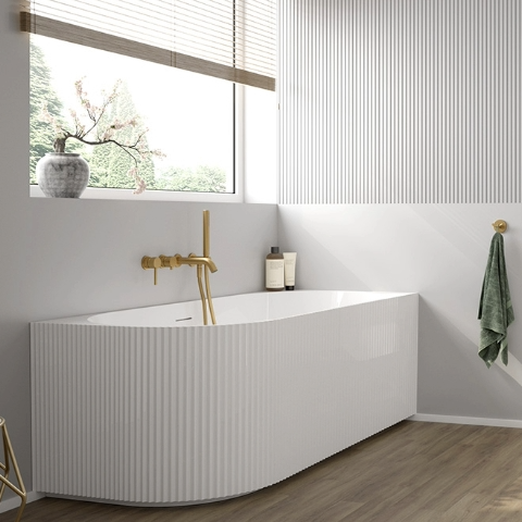 Modna, ryflowana powierzchnia wanien Hamnes idealnie sprawdzi się zarówno w klasycznych, jak i bardziej designerskich wnętrzach, nadając im oryginalnego charakteru. Żłobienia na powierzchni zewnętrznej wanny doskonale załamują światło, urozmaicając płaskie faktury wykorzystane w aranżacji łazienki. Subtelne, pionowe frezowanie zachwyca perfekcyjnym wykonaniem nadając łazience lekkości i delikatnej formy.