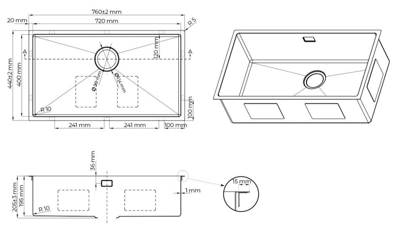 Powierzchnia zlewu jest matowa miła w dotyku, pozwala na łatwe czyszczenie, jest niepodatna na działania chemicznych preparatów, struktura nie ulega przebarwieniom. Korek zlewozmywaków Hydda tworzy ze zlewozmywakiem niemal jedną linię, co pozwala uzyskać bardziej elegancki efekt jednolitej kompozycji dna zlewu.