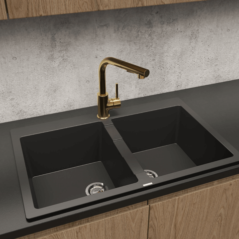 Bateria idealnie sprawdza się przy dwukomorowych zlewozmywakach, wylewka pozwala obsłużyć obie komory zlewozmywaka.